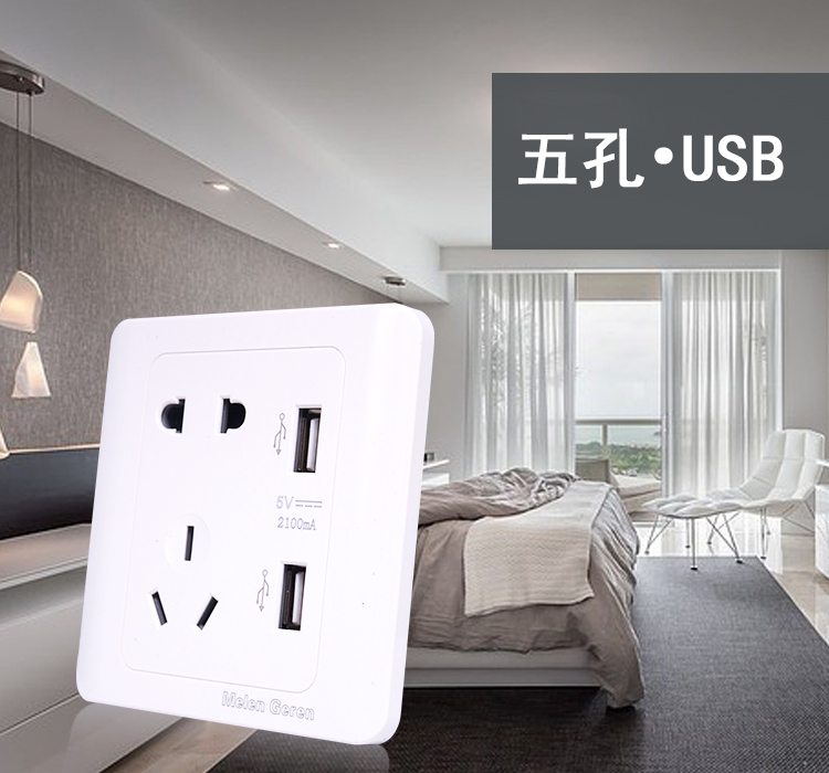 Meran Gerland 86 Hotel Home Wall Switch Socket Five-hole socket with USB mobile phone charging panel
