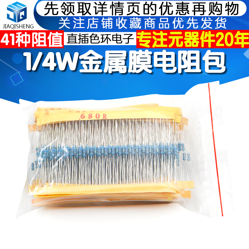 Electronic component package 1 4W metal film resistance 1% color ring resistance package plug 41 common use every 20