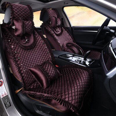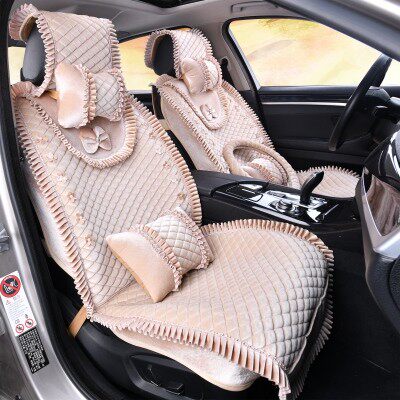 Korean women's car cushion four seasons universal winter lace cute plush cushion fashion car cushion all-inclusive