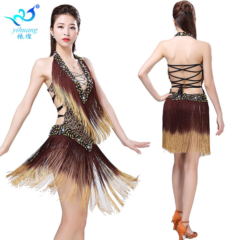 New heat pin sexy BAO WEN Latin dance suit for adults race suit with an asymptotic flow sumpsuit for a foreign dress