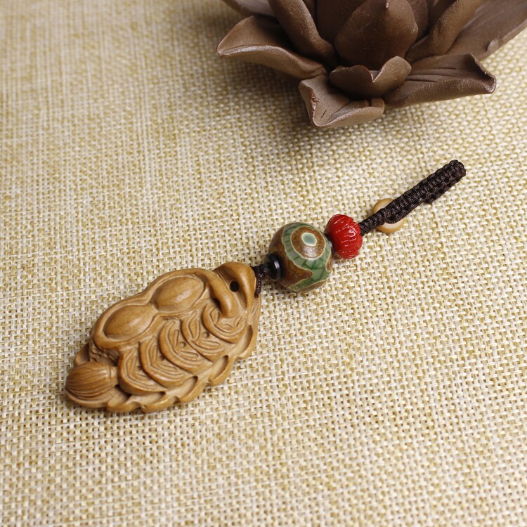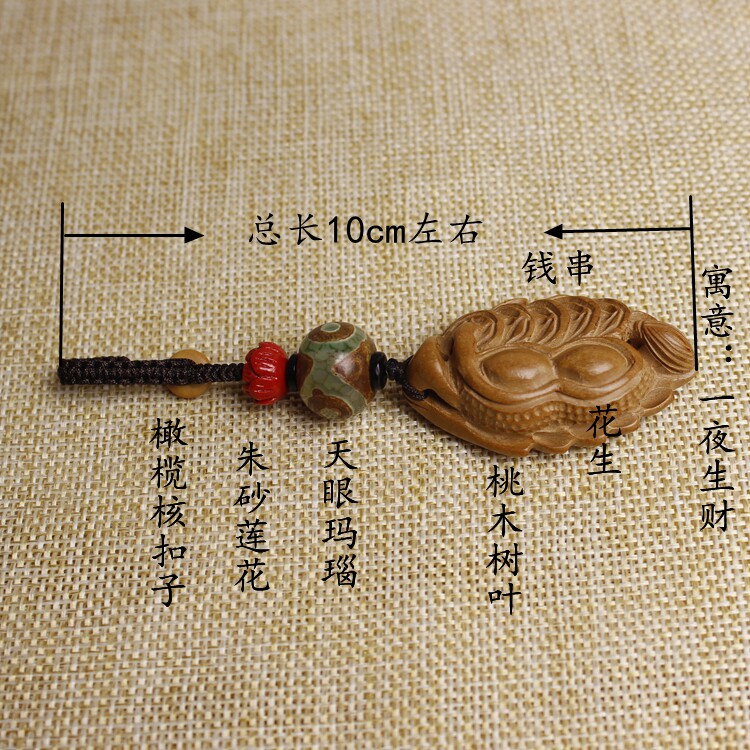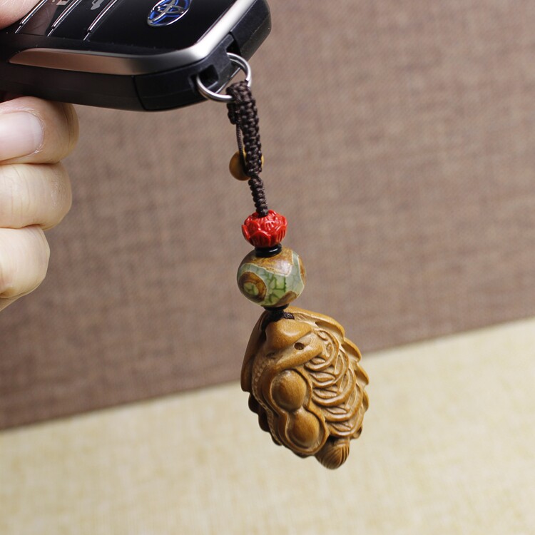 Overnight Raw Fortune Natural Peach Wood Car Key Clasp Pendant handwoven Sand Agate Creative Key Necklace Pendant
