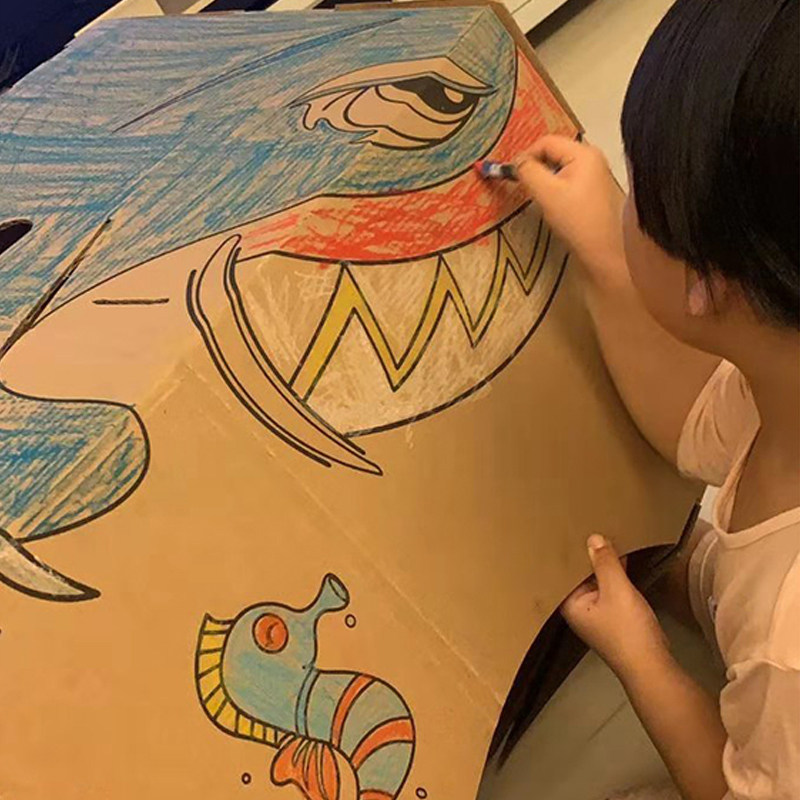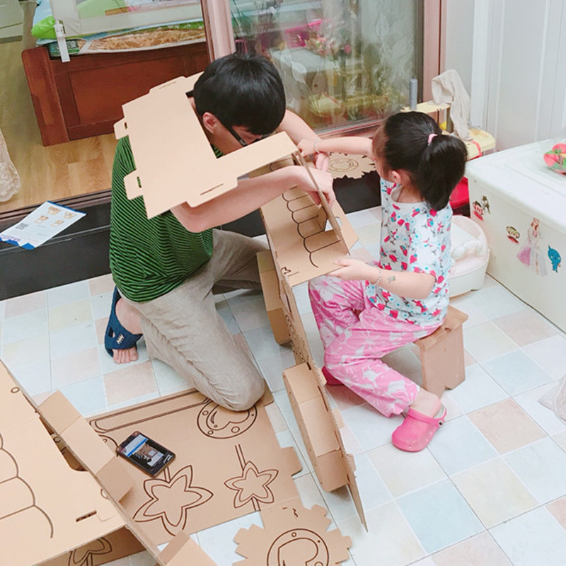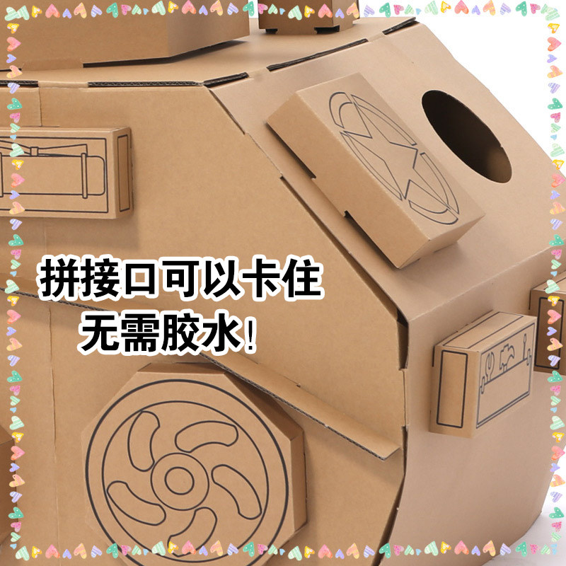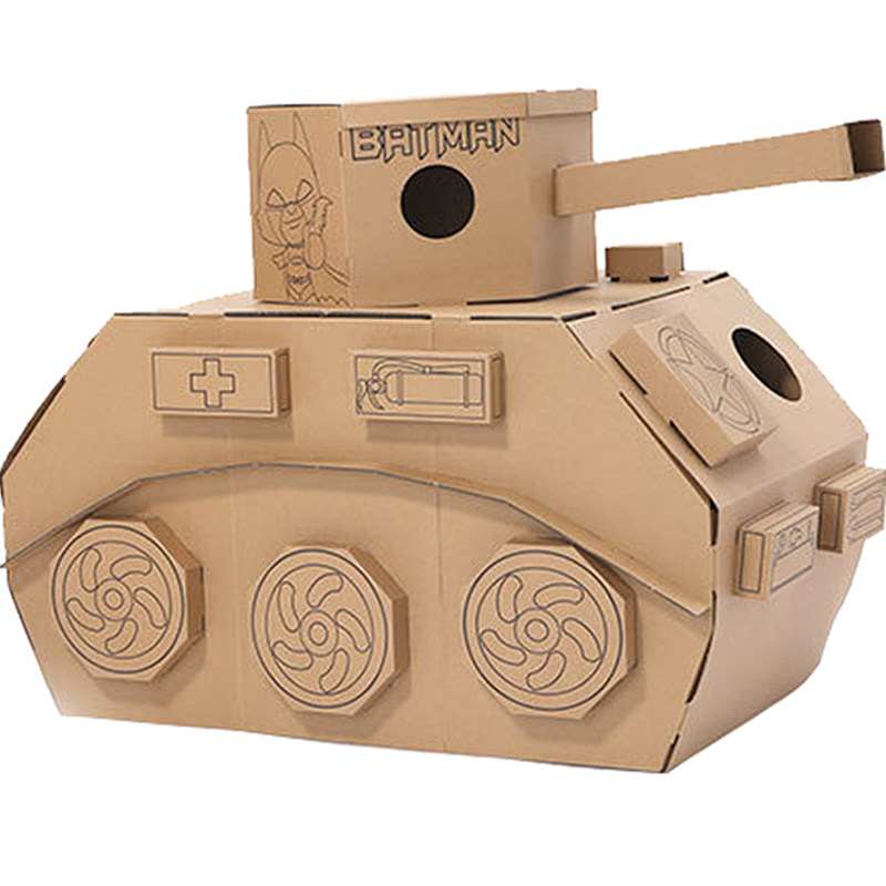 Children's toy tank corrugated paper shell box board carton skin DIY handmade car graffiti color plane model baby