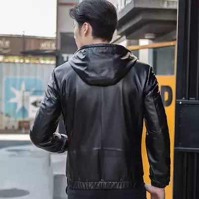 Bifeli hooded leather leather jacket men's windproof and warm Haining head layer sheepskin youth leather jacket autumn new