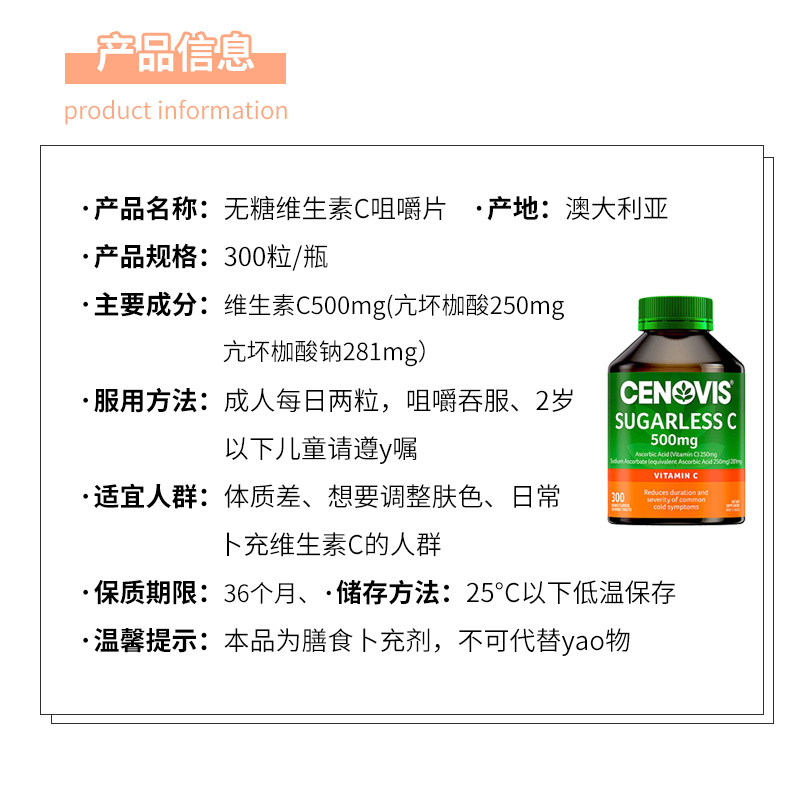 Australia's San Nocenovis Vitamin C Chewable Tablets 300 Tablets of Excellence Vibe VC Sheet Children Adults without Sugar Vie C tablets