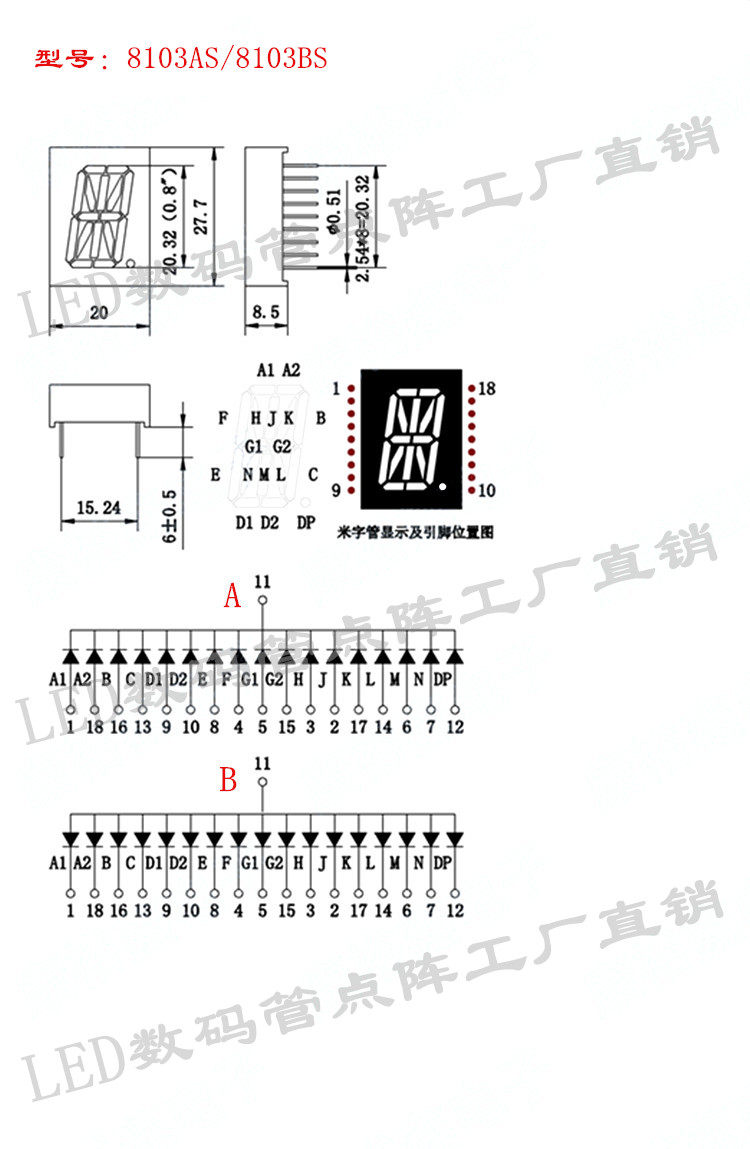 0 8 inch 1 digit red rice word glow tube 20*27 5mm glow tube 8103AS 8103BS