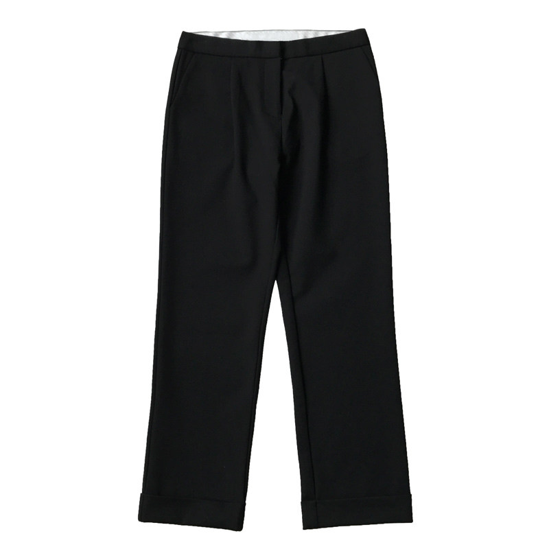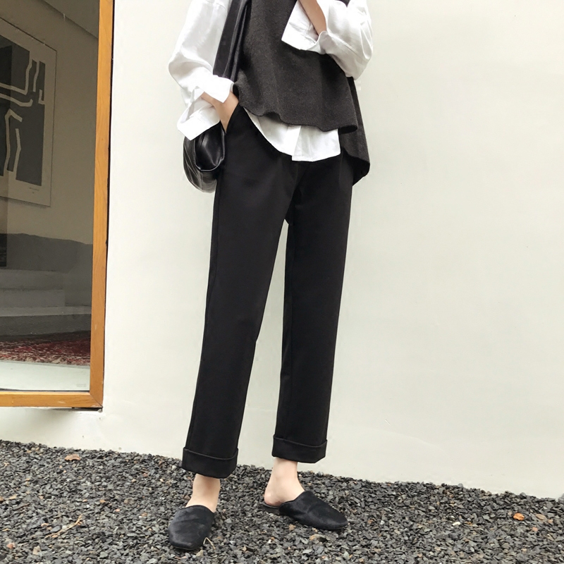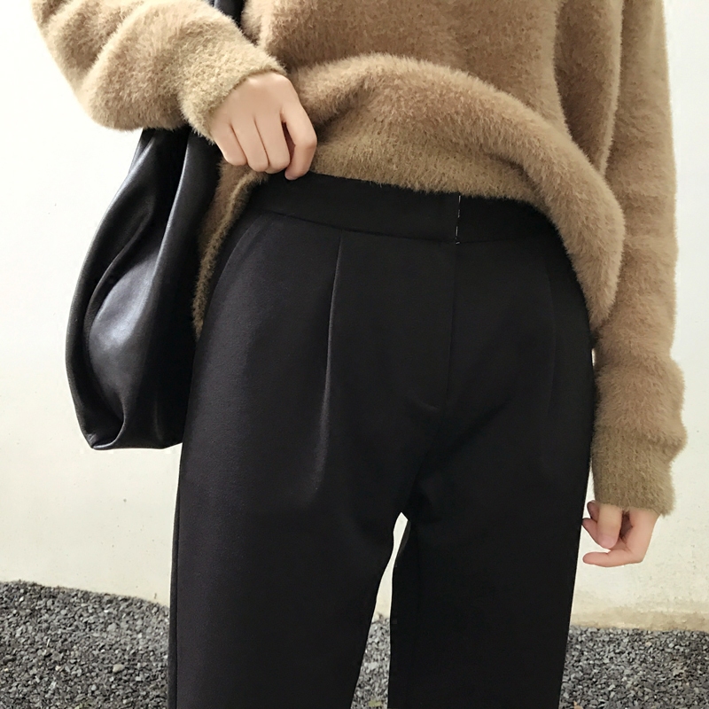 Black non-stick fur hands One trouser leg Flap Edge Loose Lean Comfort elastic straight cylinder 90% Western Pants Woman-Taobao