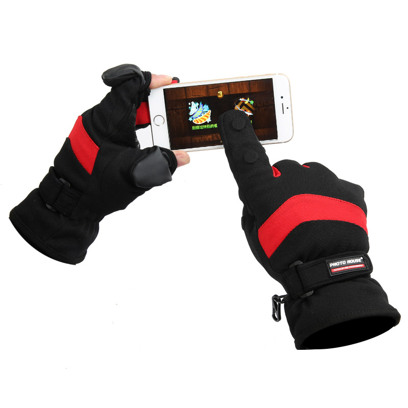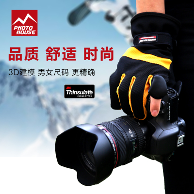 Photographic gloves winter cold protection thickens outdoor anti-slip climbing camera Lu fingertouch screen for men and women