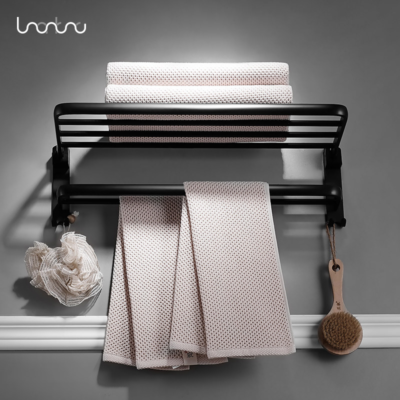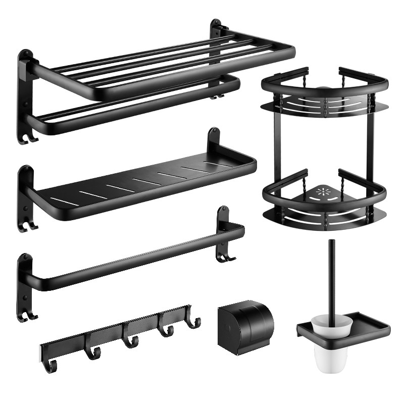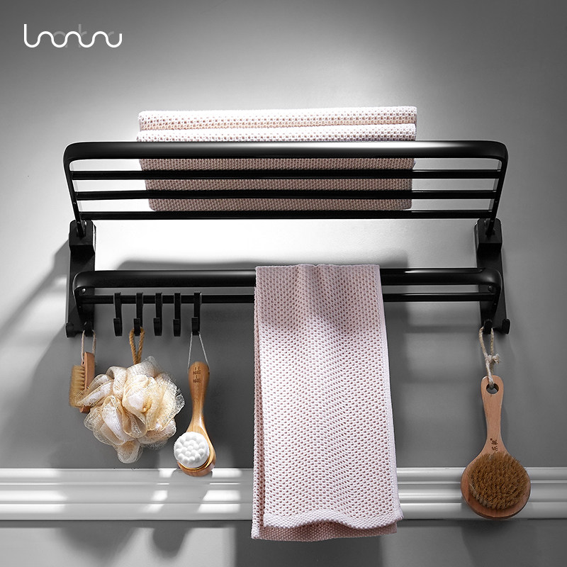 Nordic towel rack Space aluminum bath towel rack Black European bathroom can be free of punching shelf Bathroom pendant set