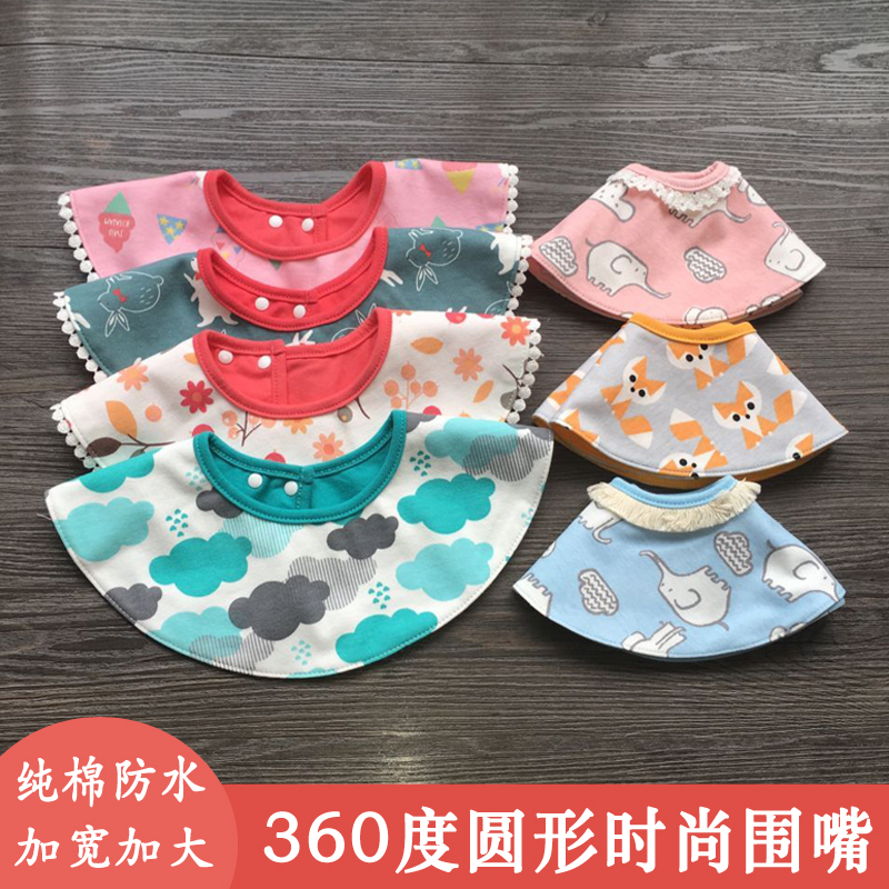 Korean Version Baby Containment Pocket Pure Cotton 360 Degrees Round Bib Baby Waterproof Spat Towel Large Size Adjustable