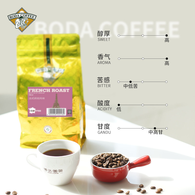 Face-style coffee bean deep baking cilanthenol flavor can now grind pure black coffee powder 454g bagged Boda-Taobao