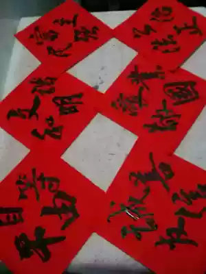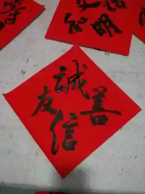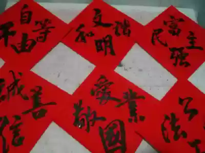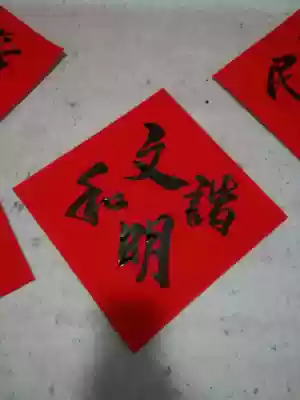 Handwritten door frame Doufang socialist core values Wuyunshan people hand-written authentic red paper six sets