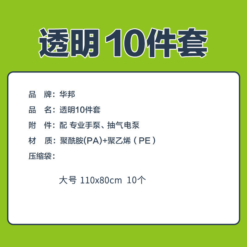 Hua Bang Vacuuming Compression Bag Transparent Extra-large 10 pieces Sleeves Send electric Pump Large Number of Quilt Clothing Containing and packing
