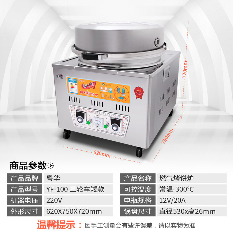 Cantonese-hua 100 dwarf commercial gas double sided heating baking cake oven tricycle branded gas sauce pancake frying machine