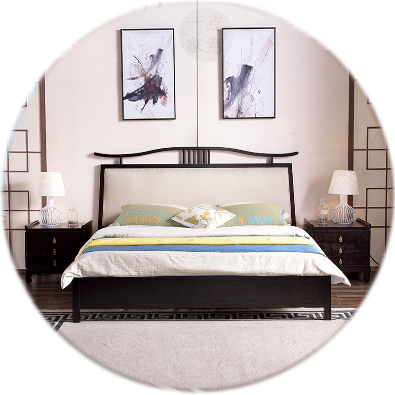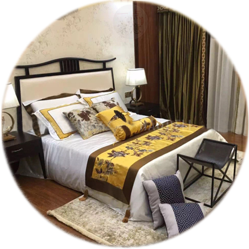 New Chinese Retro Zen Simple Solid Wood Soft Pack Single Bed Hotel Villa Guest Room King Bed Factory Custom Furniture