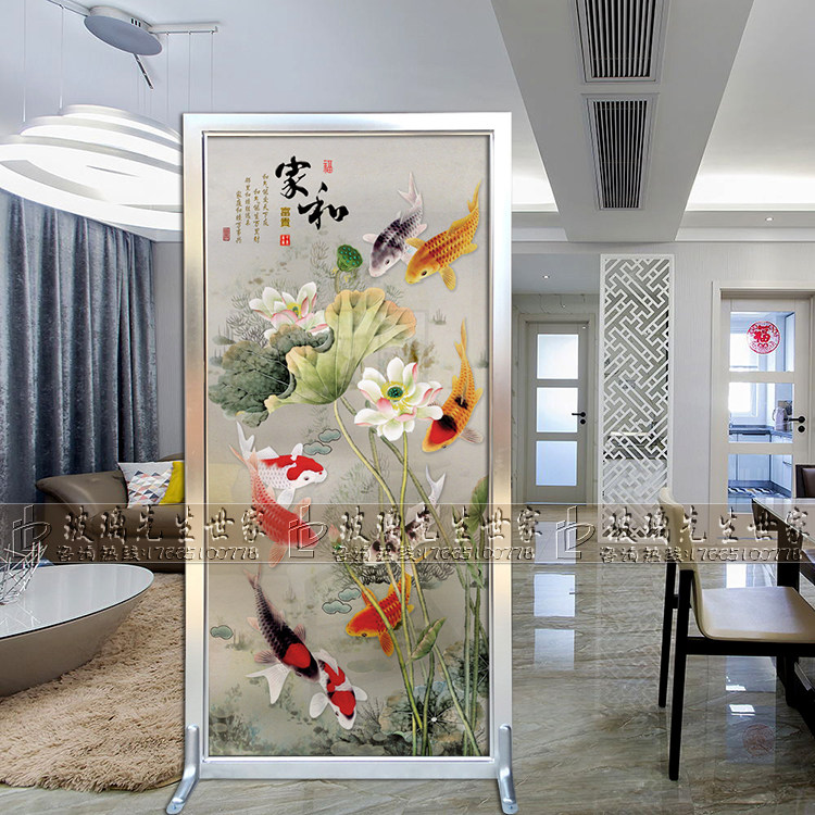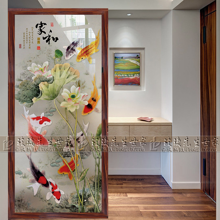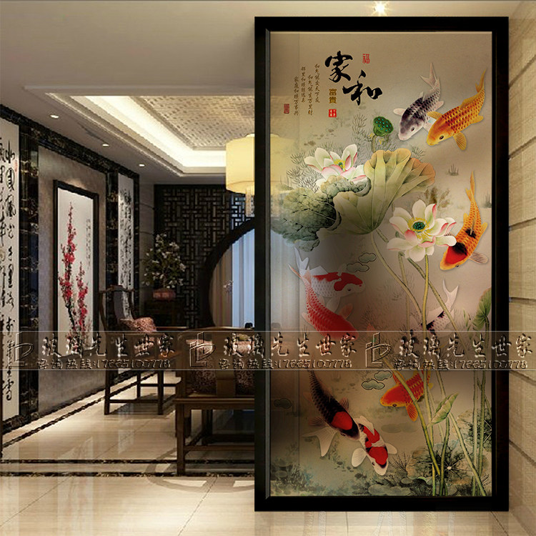 Home Dress Chinese Custom Art Glass Living Room Screen Xuanguan Partition Aisle Background Wall Frosted Euphotic Nine Fish Plot