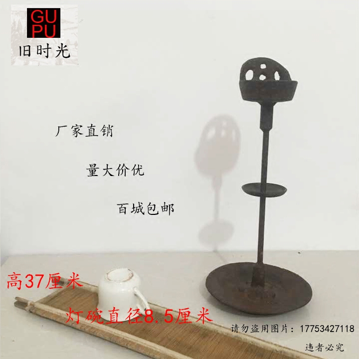 Old iron lamp old oil lamp cast iron oil lamp old lamp table old lamp film and television props iron candlestick retro old decoration