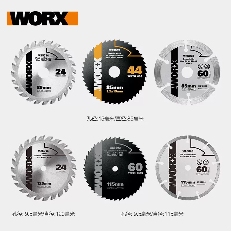 WA5034 Wood saw blade 85mmWA5035 Metal saw blade 85mmWA5038 Diamond saw blade 85mm