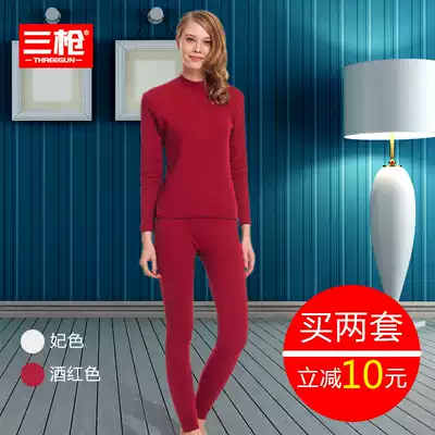 Three gun underwear autumn and winter new cotton vertical stripe half high collar autumn clothes sanitary pants men and women fever clothing pants