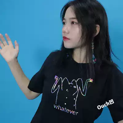 Dutch Leon Karssen blue cat does not matter shrug laser T-shirt WHATEVER Tee spot illustration