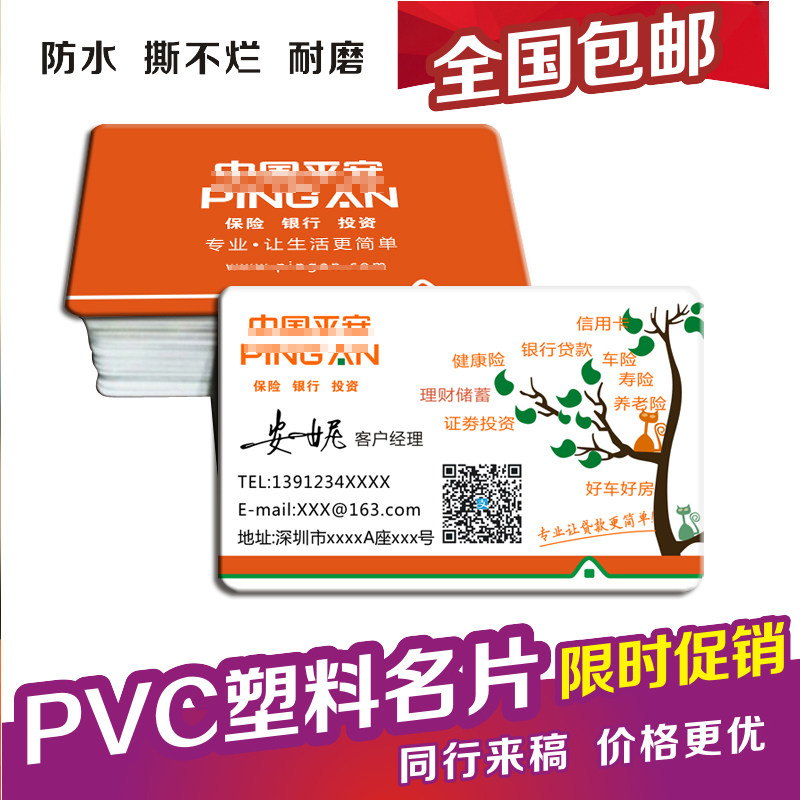 PVC double-sided business card QR code China Ping An life insurance business card custom production printing design