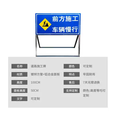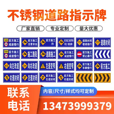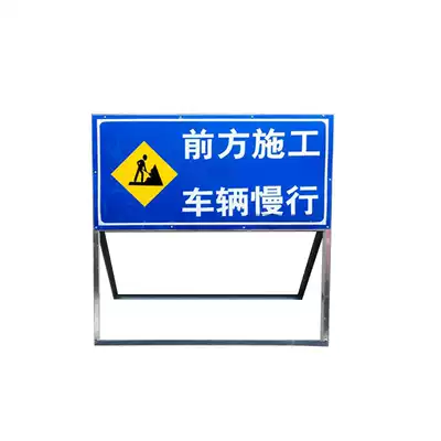 Front construction sign movable folding stainless steel safety warning outdoor construction reflective sign customized