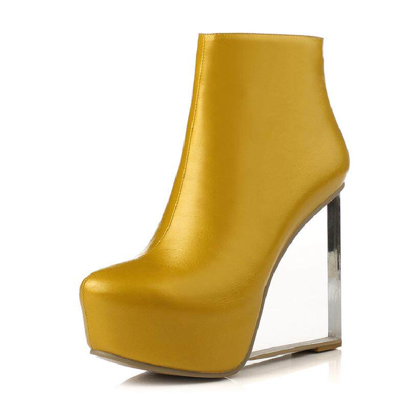 Hate Sky High 13CM Short Boots Woman Dermis heel Waterproof Bench short cylinder Martin boots Autumn winter coarse heel Bull Leather Single Shoes Naked Boots