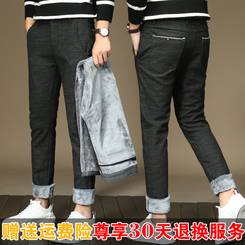 Autumn and winter fleece pants men's pants winter thickening men's small feet youth Korean version of the trend casual pants winter winter