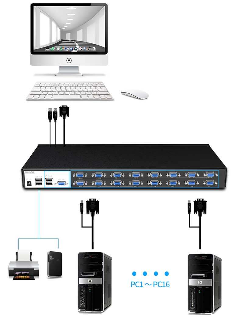 Maxtor dimensional moment MT-1601VK industrial grade 16-port vgakvm switcher usb automatic keyboard hotkey switching