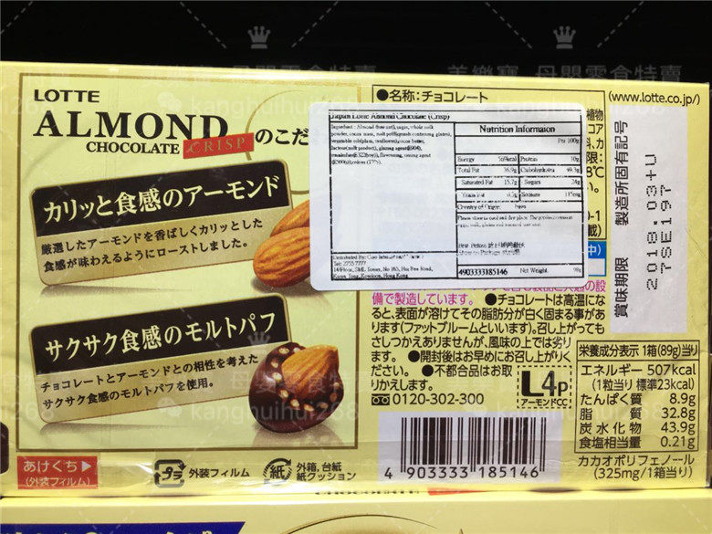 3 boxes of special price Hong Kong Japan LOTTE letian wheat crisp almond original grain Hawaii Gojuguli 86g * 3
