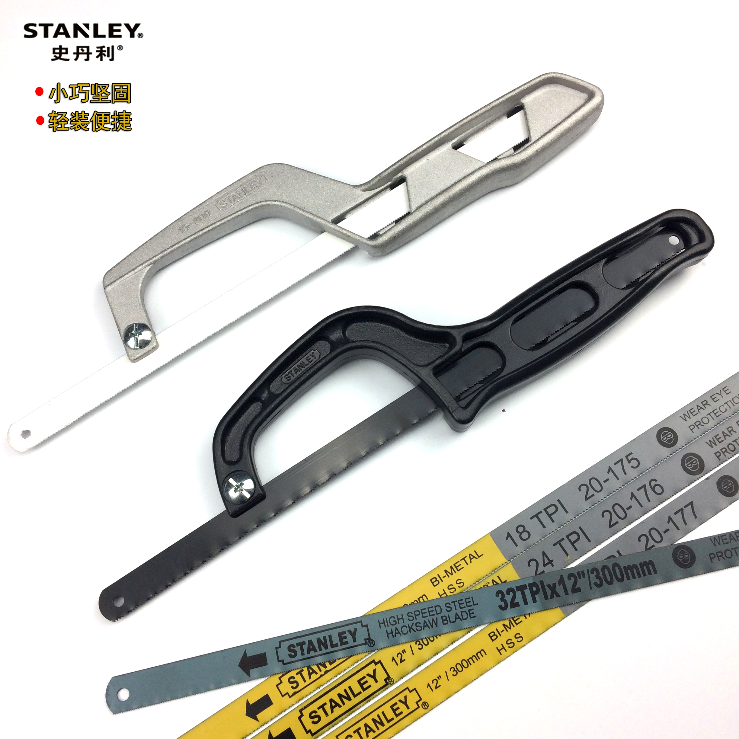 Metal handle small hacksaw 10 (single with a white saw blade installed) Pocket hacksaw 220mm (full body ABS high strength plastic steel to create a black saw blade installed) Metal handle small