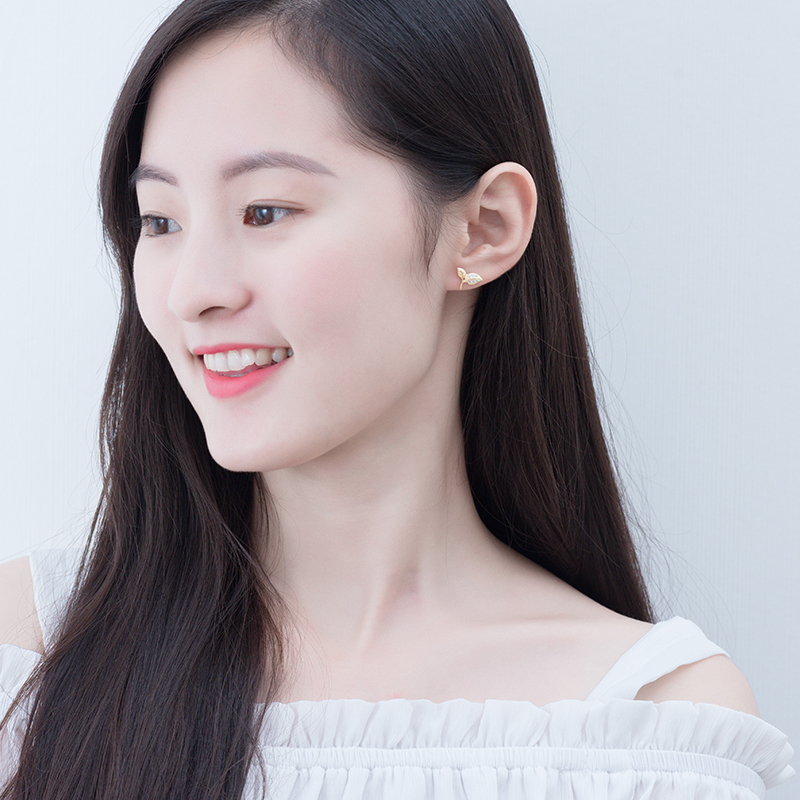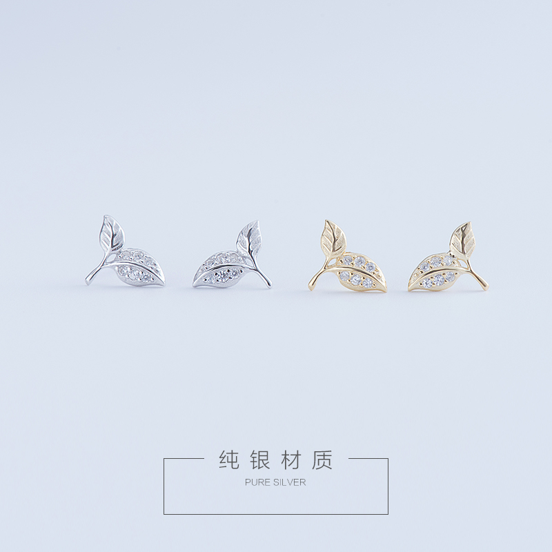 Golden Mei Australia simple leaf ear needle female Sensin S925 literary and artistic sprout jewelry leaf shaped earring