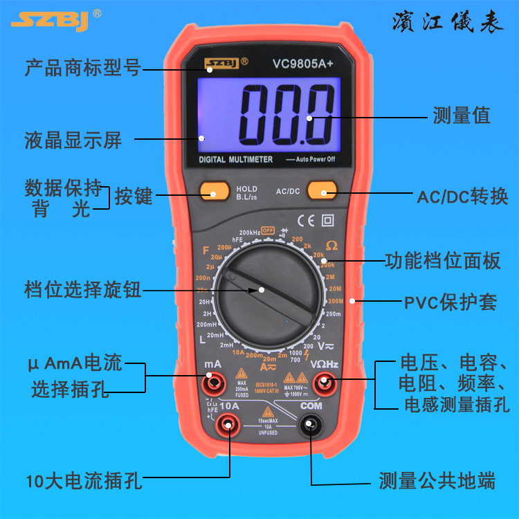 Binjiang Instrument VC9805A with induced capacitor resistance frequency measurement multi - functional digital meter