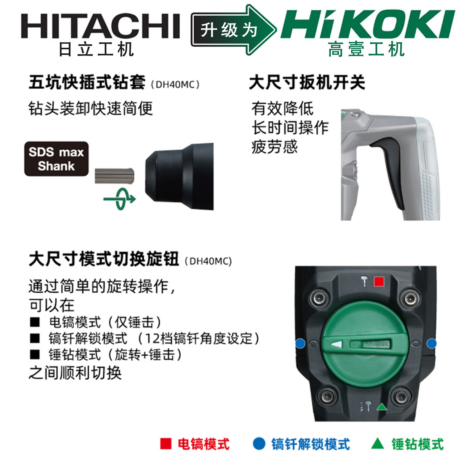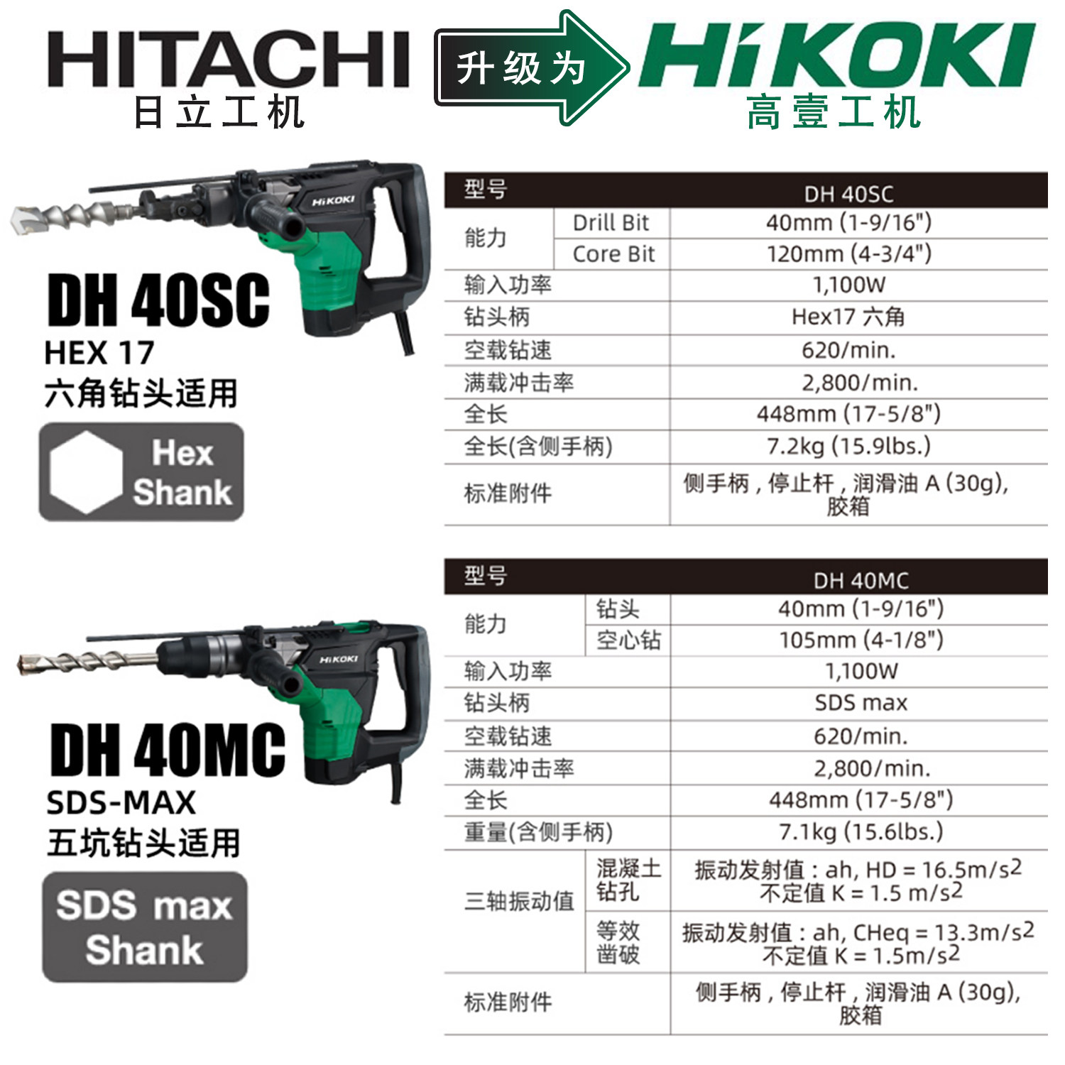 Hitachi Hikoki High one machine DH40SC hexagonal handle electric hammer 1100 watt hammer pick 2 with DH40MC 5 pit handle-Taobao