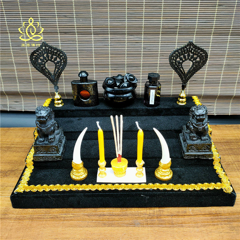 Thai Buddha's Tablets Shrine Offerings Tribute Gift Small Stone Lion Guardian Beast Gold Pair Silver Black