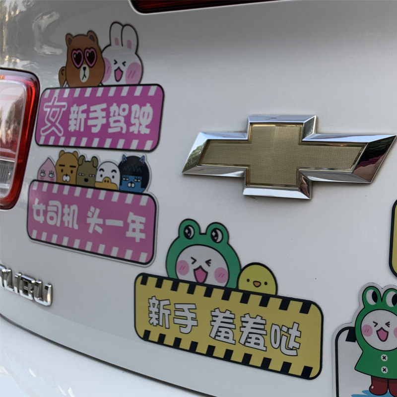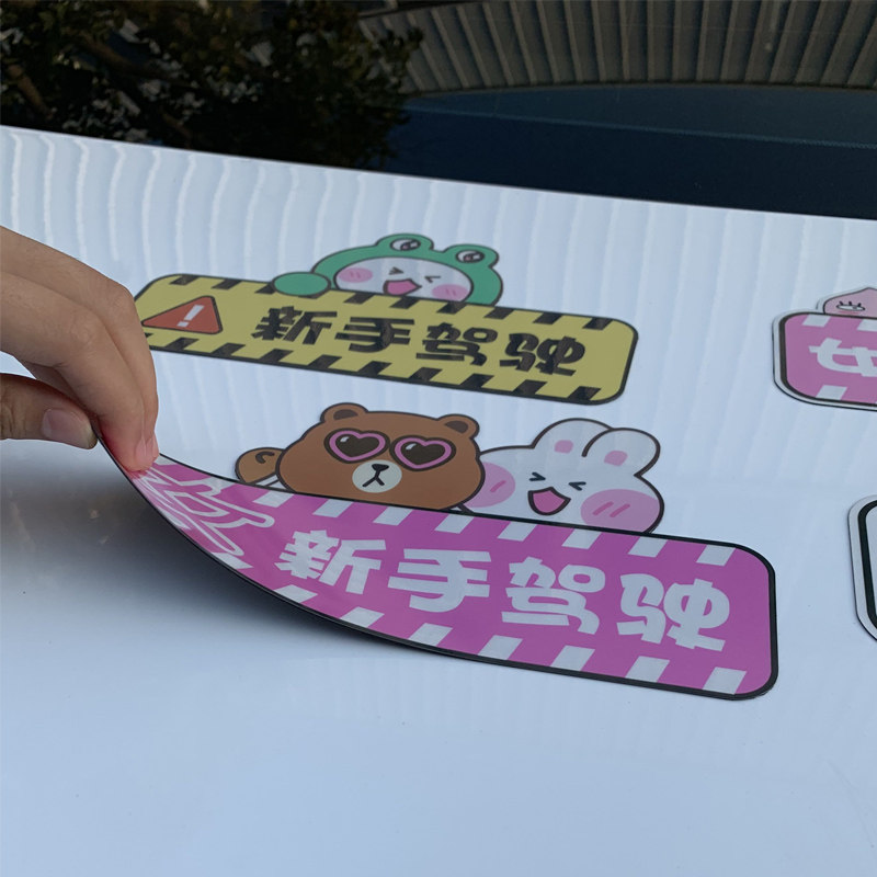 Internship logo female novice on the road Magnetic stickers Car stickers Creative personality body stickers Reflective waterproof female driver
