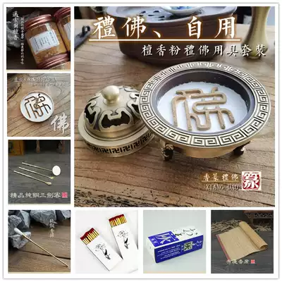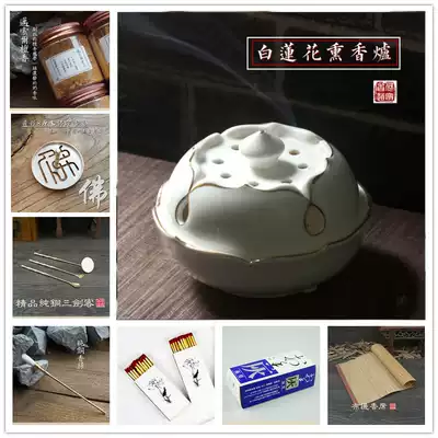 (Three-legged copper furnace) one (white porcelain lotus incense burner) a three-legged furnace set with Buddha pattern agarwood tripod set with Buddha pattern sandalwood powder tripod set with Buddha pattern