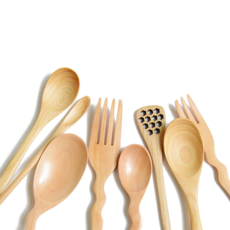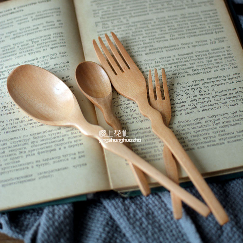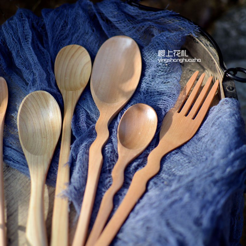 Japanese wooden long handle coffee spoon honey spoon rice spoon baby spoon fork fruit fork log natural environmental protection