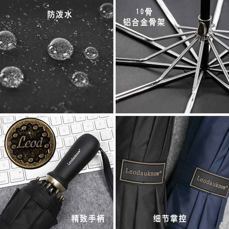Oversized manual 123cm double ten-bone business reinforcement plus female three-fold windproof and rainproof male umbrella