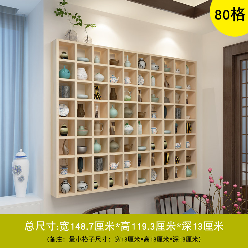 Custom-made solid wood lattice shelf wall shelf wall hanging storage cabinet teapot display rack creative tartan shelf