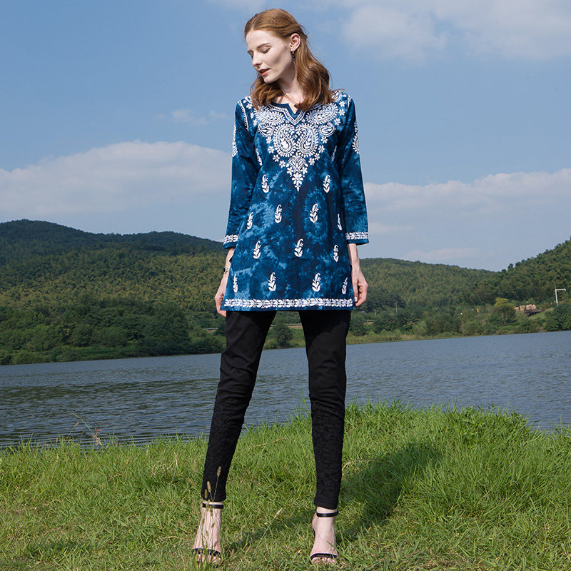 Savage trinkets ethnic style clothing Indian style top female pure cotton hand-embroidered ethnic style spring and autumn thin section