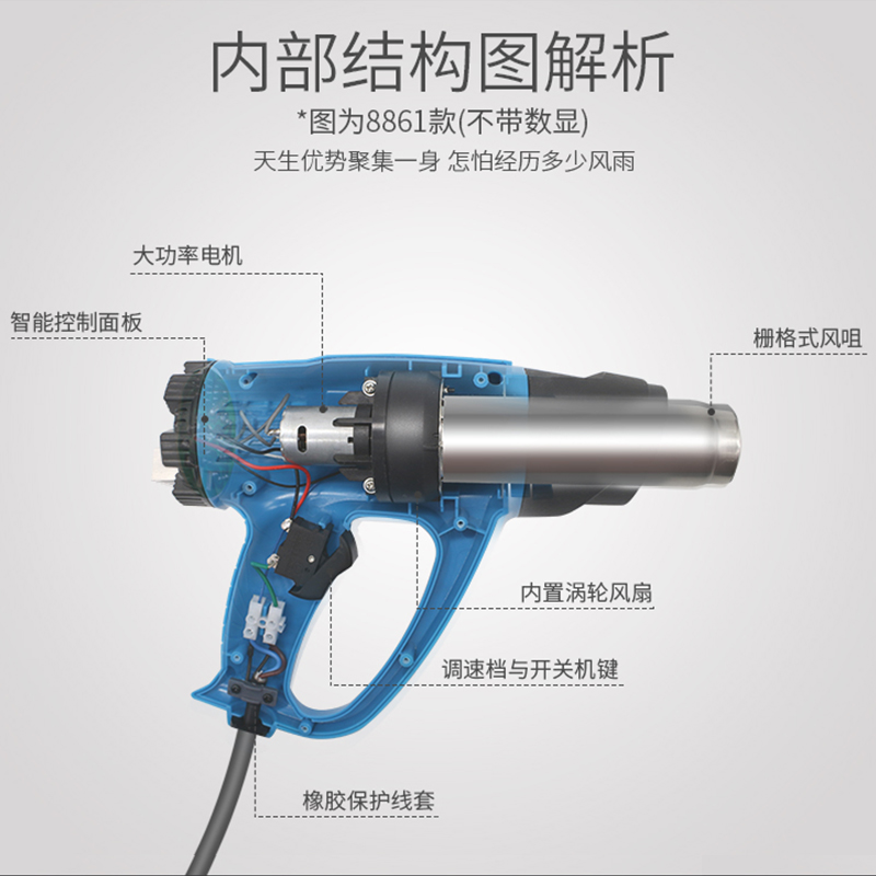 Tempering hot air gun Car film digital display baking gun Industrial grade hand high power heat shrinkable film hair dryer drying gun