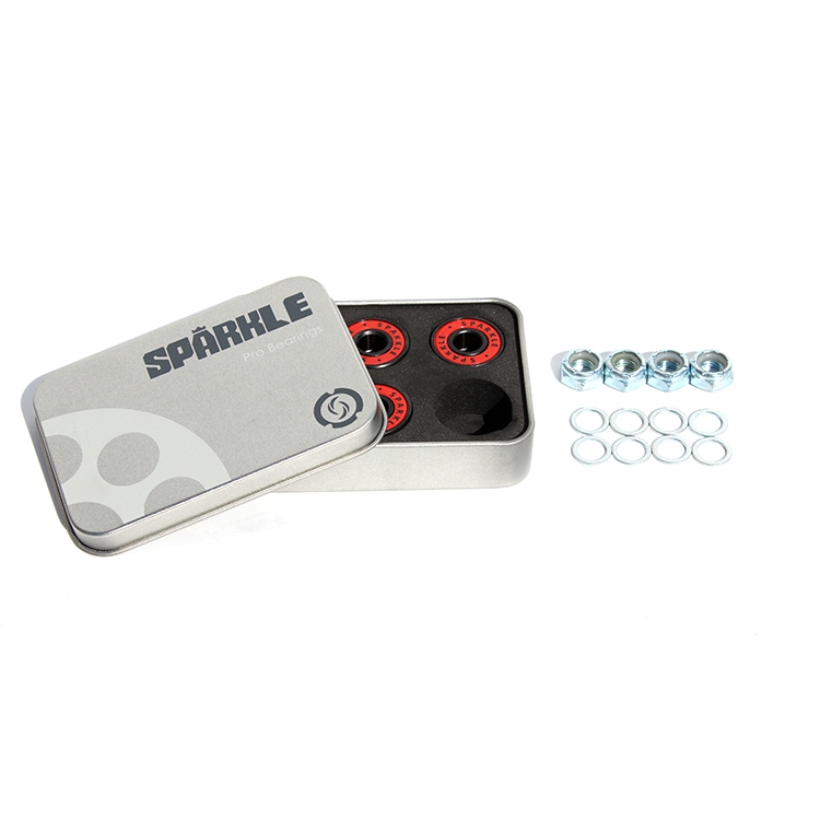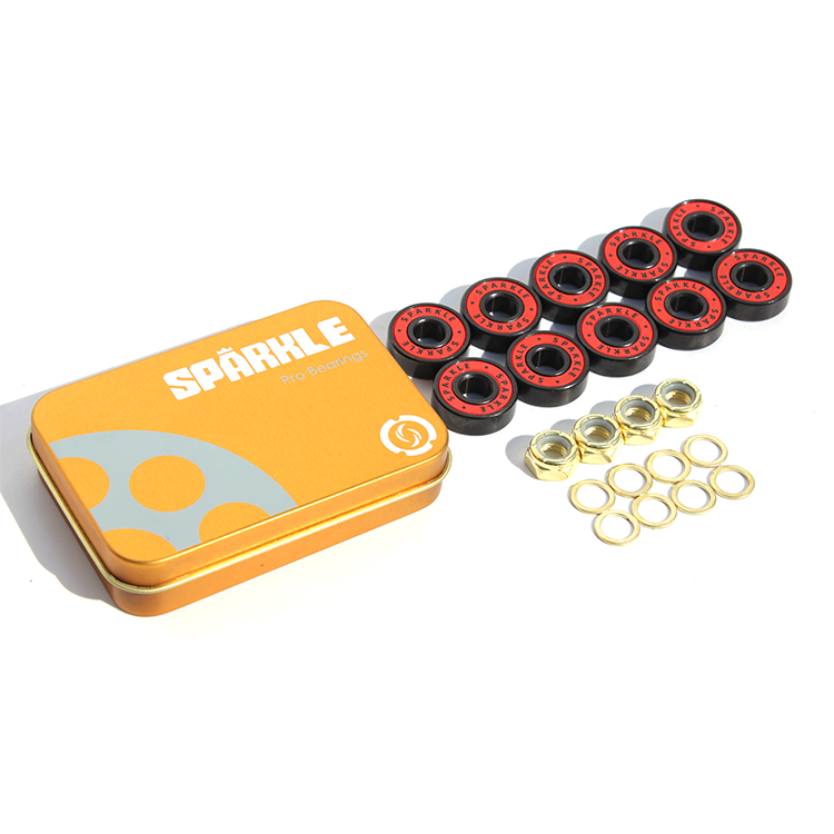 SPARKLE BEARINGS PROFESSIONAL SKATEBOARD BEARINGS HIGH REV ten BOX MOUNTED BEARINGS WITH SIDE MOTHER SPACER SILVER GOLD