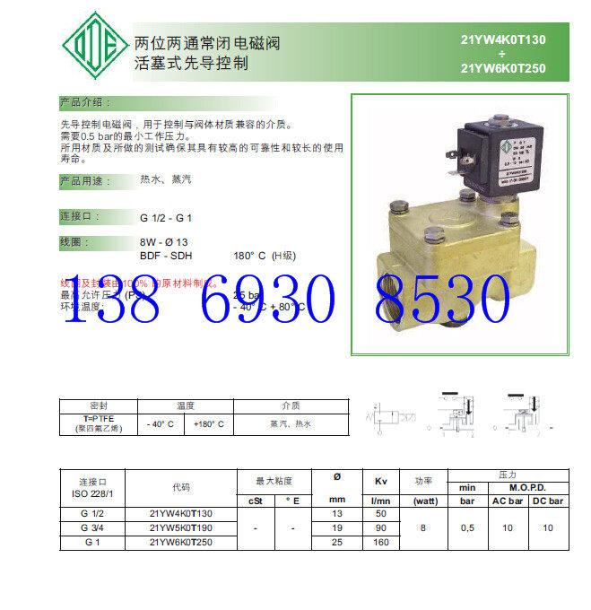 Italy ODE solenoid valve 21YW4K0T130 steam hot water two-position two usually closed high temperature valve spot