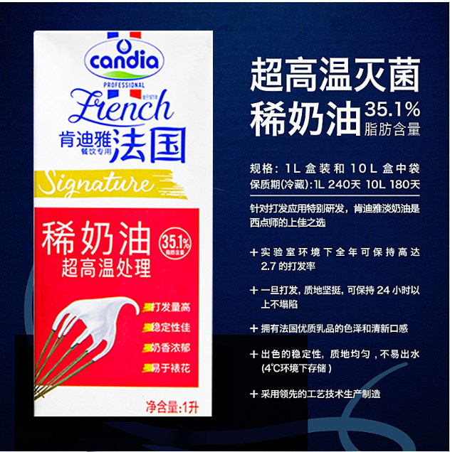 Kendia light cream 1L French imported animal cream fresh cream light cream cake decorated with red label raw materials