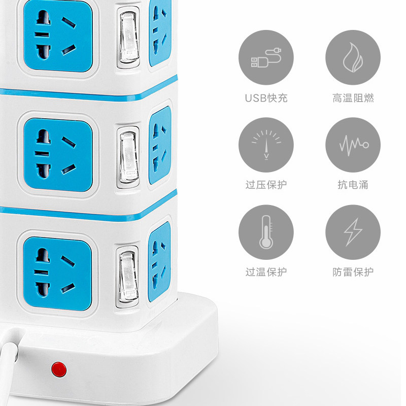 Green Guide Vertical Socket Panel Porous Home Smart Plugboard With Wire Platoon Plug Multifunction Socket Extension Cord Usb
