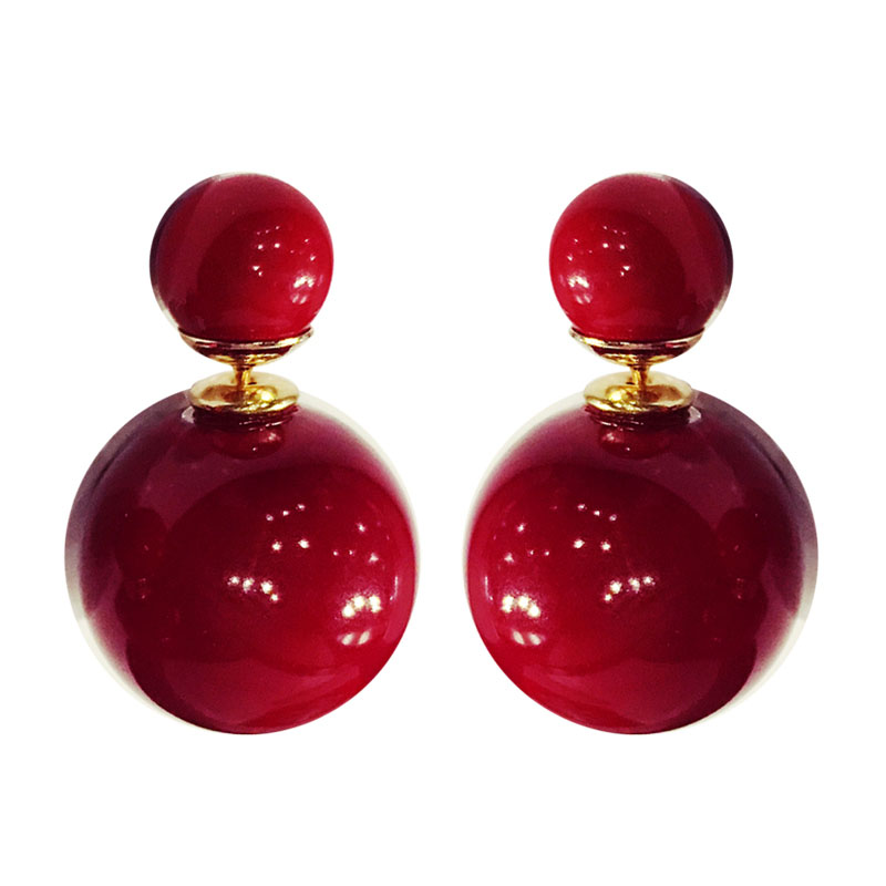 Round ball-ball double-sided ear nail female front and back size pearl earrings South Korean wind earrings ornament 100 hitch Yooslap-Taobao