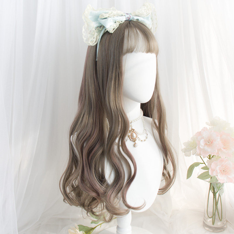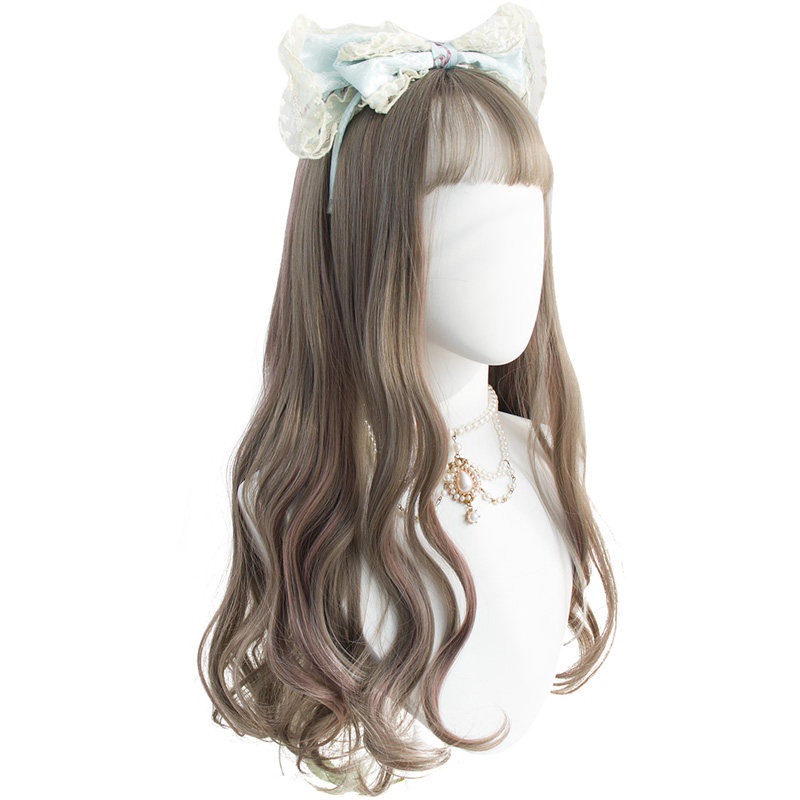 Aoki linen gray wig female long hair non-mainstream highlighted gradient large wavy long curly hair full headgear Daily natural