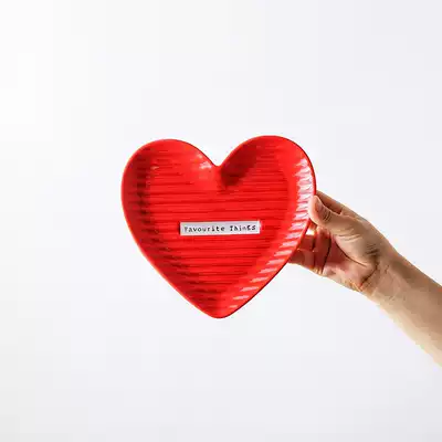 Ceramic small plate, love flat plate, shallow plate, household fruit plate, peach cake plate, creative breakfast plate, Japanese tableware