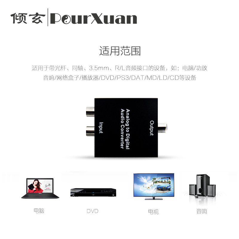 Audio Left-right Channel Red White Twin Lotus Analog Signal Transdigital Fiber Coaxial 3 5mm Audio Converter