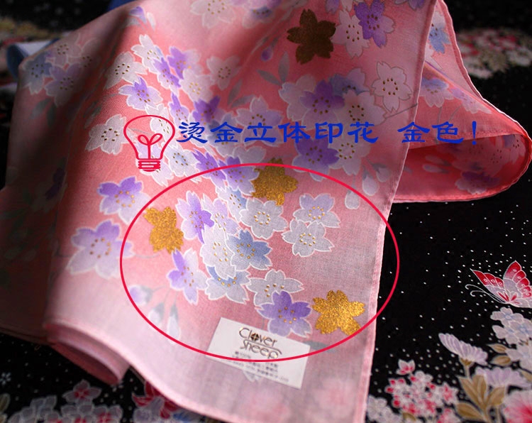 Japanese-made women's pure cotton handkerchief with Japanese wind bronzing cherry blossom cotton handkerchief absorbent Japanese-style small square handkerchief